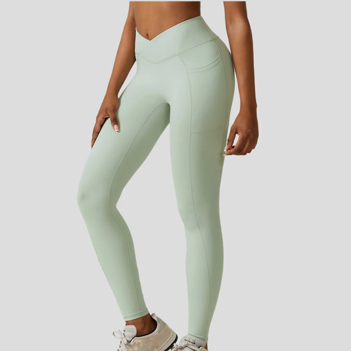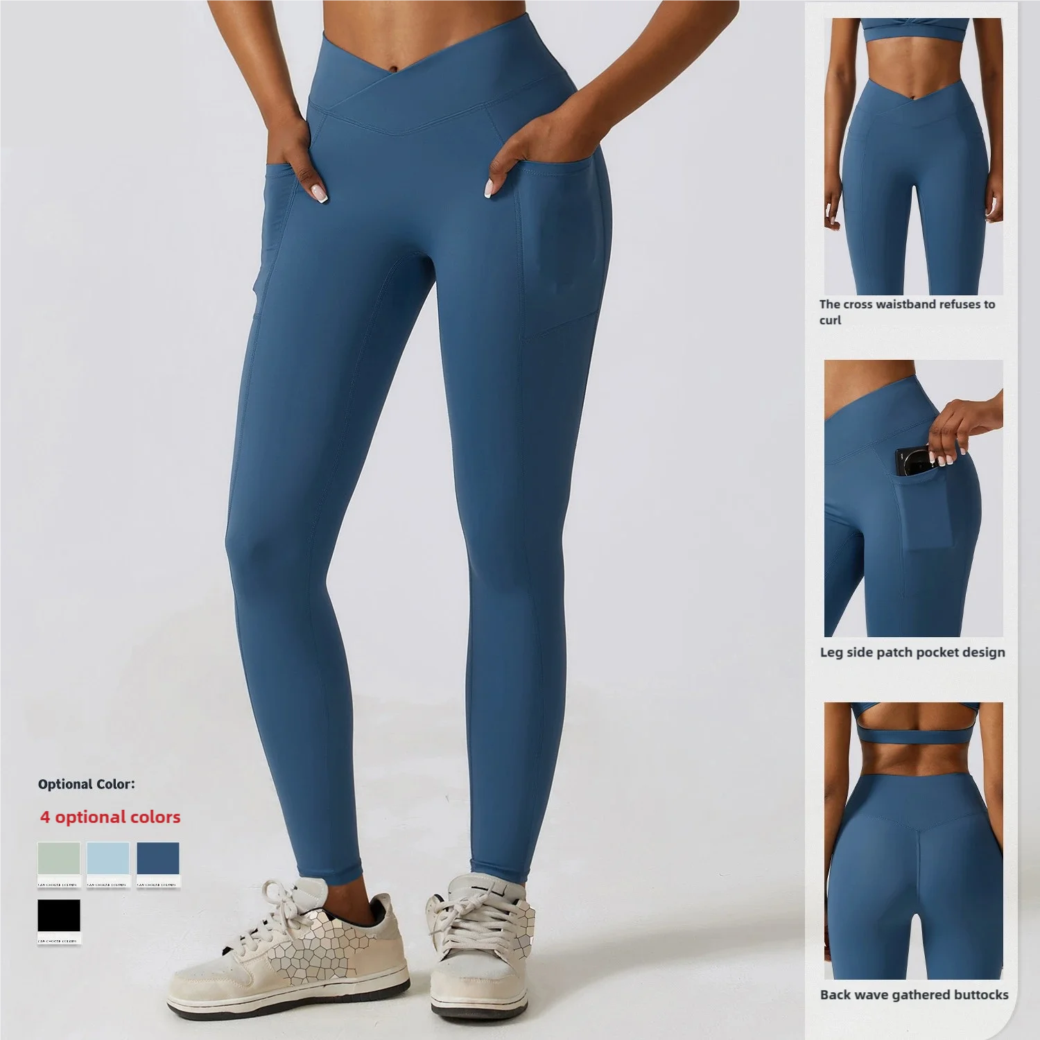 New Arrival Female Yoga Leggings Quick-Drying High-Crossover Waist Yoga Pants V Shape High Waist Soft Breathable Solid Sports